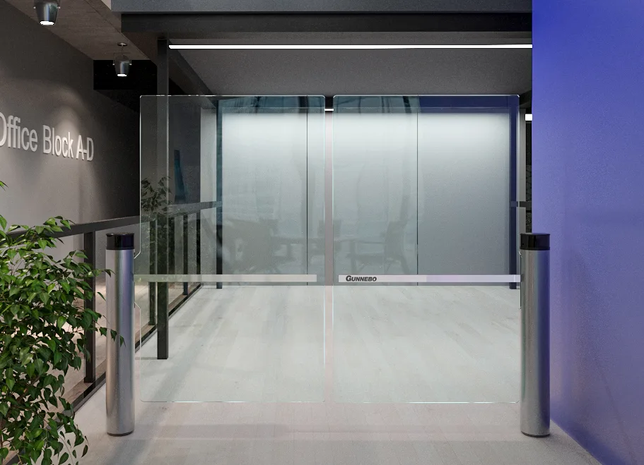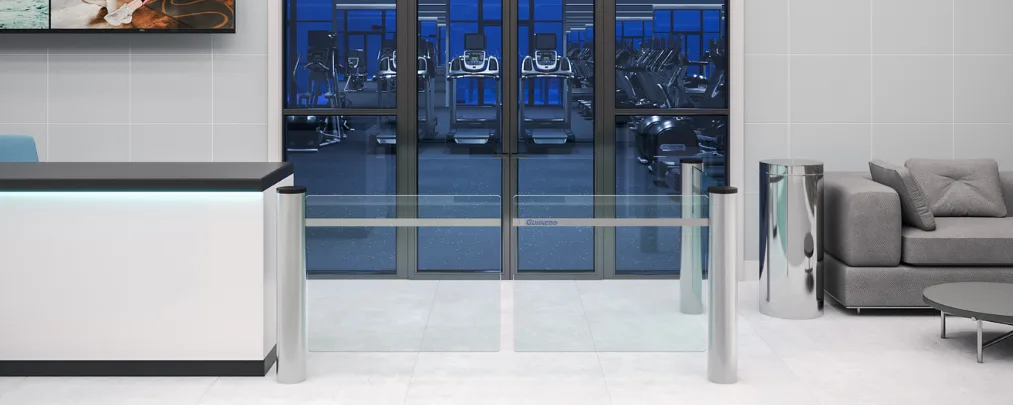 De GlasStile S-serie bestaat uit transparante entreepoorten met één glazen vleugel, die tweezijdige doorgang mogelijk maken. Ook in tandemopstelling.